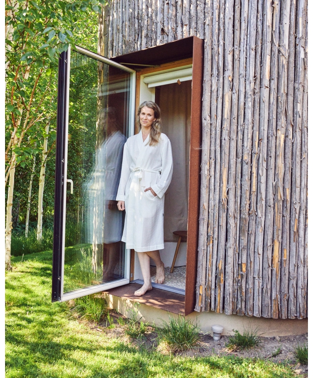 - Sommerkjole-inspiration: Letvægtsbadekåber i bomuld eller linned kan bruges som en uformel sommerkjole for et afslappet strand- eller pool-outfit. Kombiner med sandaler og en stråhat for det perfekte sommerlook.